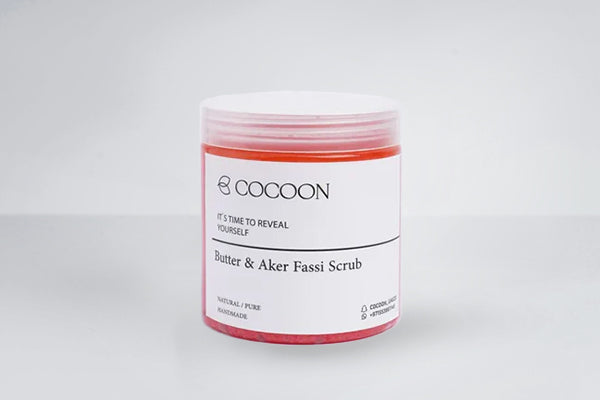 Aker Fassi & Butter Scrub: This special scrub combines the power of authentic Moroccan Aker Fassi with the benefits of four rich natural butters: Shea Butter, Cocoa Butter, Glycerin Butter, and Mango Butter. It also contains grape seed oil and natural soy wax. Key Benefits: Deep Exfoliation: Helps remove dead skin cells, promoting cell renewal and leaving the skin smooth. Intense Hydration: Shea butter and natural keratin deeply hydrate the skin, giving it a healthy and supple appearance. Skin Brightening: Moroccan Aker Fassi is known for its ability to brighten the skin and improve overall complexion. Dryness Treatment: Effectively combats dryness with moisturizing natural ingredients.